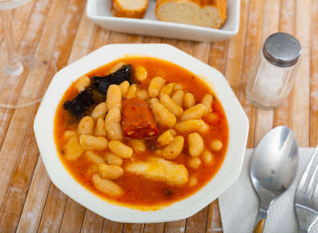 Typical Spanish dish of white beans with chorizo