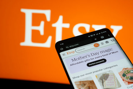 Dhaka, Bangladesh- 03 July 2025: Smartphone displaying Etsy web interface against Etsy logo background.