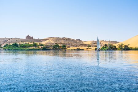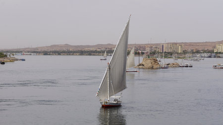 20.05.18 Aswan Egypt Sailing boat on The Nile river West Bank