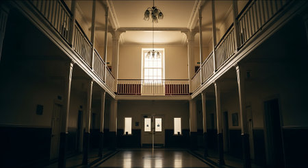 Abandoned Asylum, Broken Windows, Residual Spirits, Flickering Lights, Creaking Hallways, Golden Hour Photography, Haunted Enclaves, Spooky Ambiance