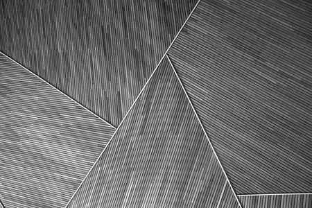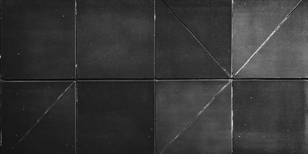 Black tile wall with abstract geometric lines and minimal modern pattern. Architectural surface showing clean textured background detail.
