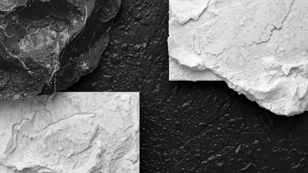 Monochromatic Geometric Textures and Patterns in Creative Abstract Composition A digital collage of various materials shapes and architectural elements in a minimalist modern