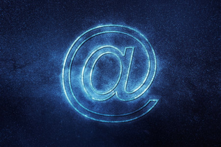 Main signage of internet pronounced at or at sign or address sign colorful in metaverse conceptual reality imagination virtual and real world - cybersapce hypothesized iteration of the internet, supporting persistent online 3-D virtual environments