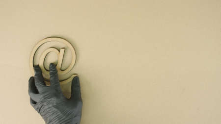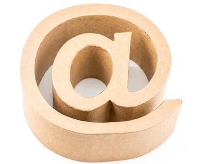 Putting commercial at symbol made of recycled cardboard on the table. Sustainable telecommunication concept