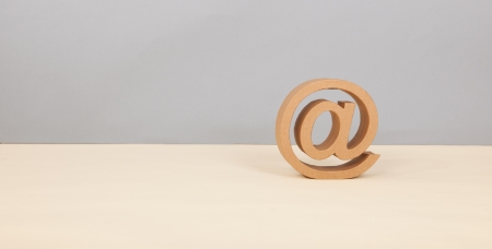 E-mail mark shape created from concrete and wood. AI generated illustration