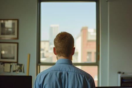 Young overweight man reflecting by the window, contemplating lifestyle changes for better health