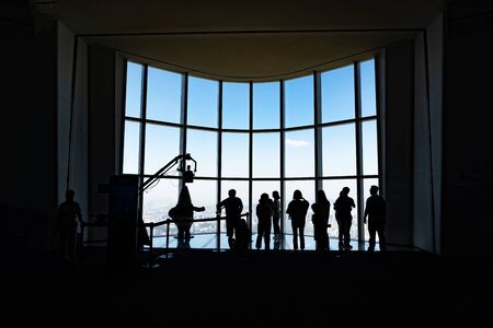 CHICAGO, IL - CIRCA MARCH, 2016: visitors at John Hancock Center's observatory. The John Hancock Center is a supertall skyscraper at 875 North Michigan Avenue, Chicago.