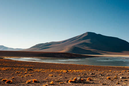 Mountain Altiplano reflected in the lake, Bolivia, South America