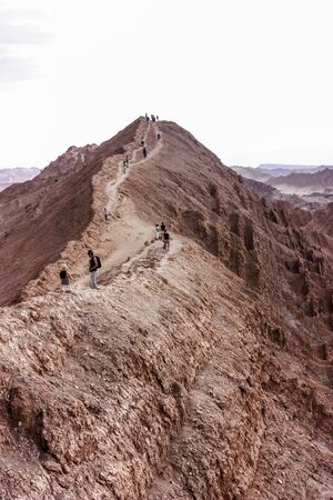 Atacama Desert, Chile - January 18, 2013: A tour group wanders through Valley Moon, Atacama Desert, Chile