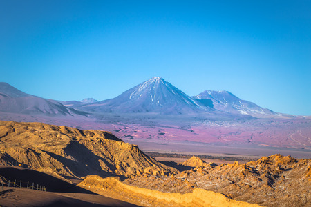 Atacama Desert dramatic volcanic landscape at Sunset, Chile, South America