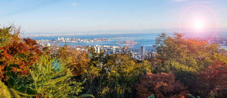 Kobe, Japan - NOV 05, 2019: City landscape, aerial port view