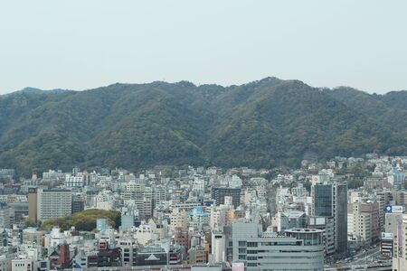 Aerial view of the Shin-Kobe district in Downtown Kobe, Japan