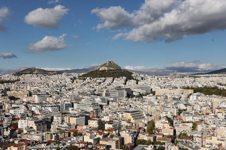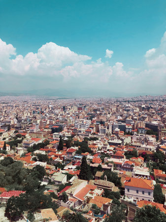 Athens, Greece - November 1, 2017: View of Athens from Acropolis with mass of houses, buildings, apartments, rooftops in the city center of Greek capital, Greece.