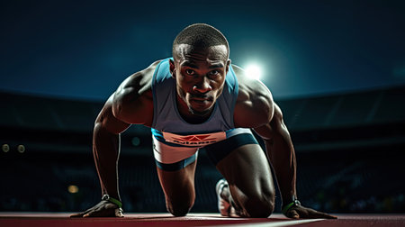 Portrait of a focused male athlete at the start of a sporting event in a stadium