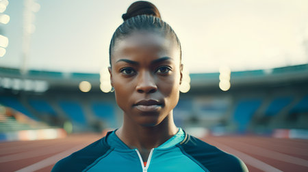 portrait of young beautiful african woman runner on the stadium