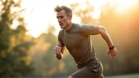Fit man over 40 wearing activewear during a running exercise