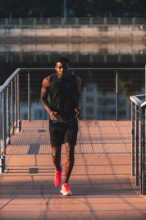 Handsome young African man in sportswear enjoying his morning jog outdoors