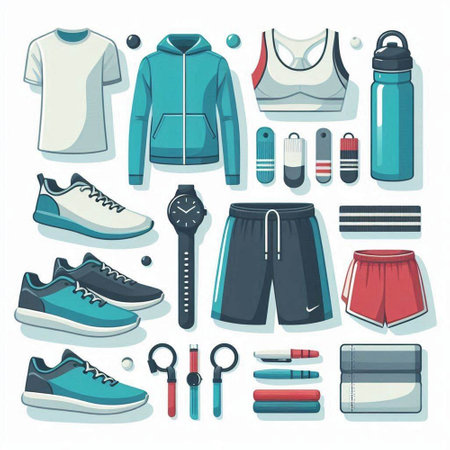 Sports and fitness equipment. Set of sportswear. Vector illustration