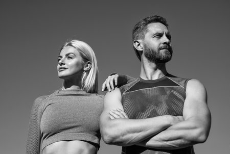 young sports couple, man and woman in sportswear, with fighting ropes and ball before training outdoors, sport, motivation
