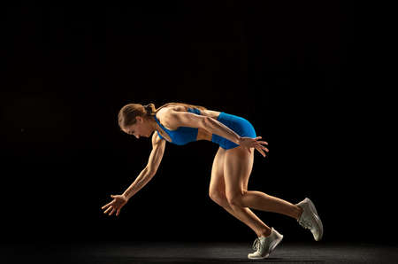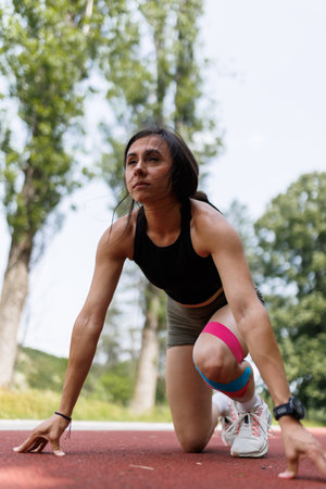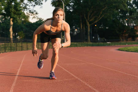 Female athlete in position ready to run. Young woman ready for a sprint.