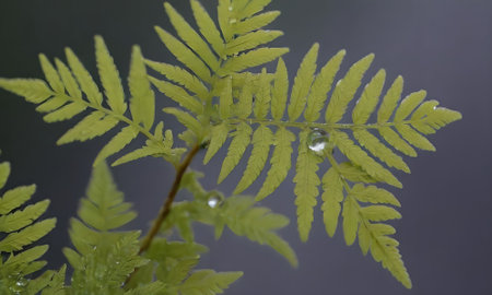 Fern leaves with water droplets on the leaves, close up