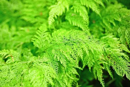 fern leaf is green with shallow depth of field. shallow depth of field on fern branches