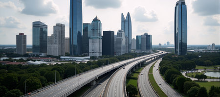 city's business and banking centers rise above the roads of Charlotte, North Carolina.