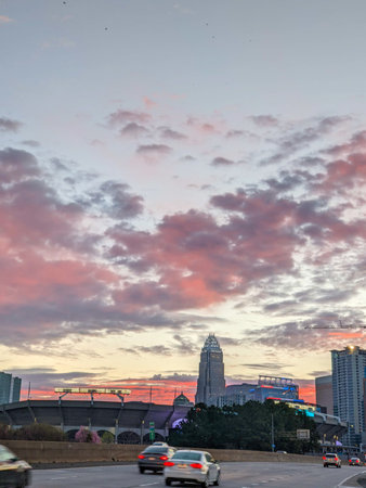 Early morning sunrise over charlotte city skyline downtown
