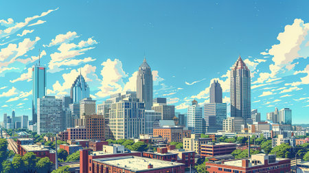 Atlanta skyline at sunset with beautiful sky illustration