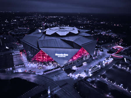 Aerial view of downtown Atlanta at night, Georgia, USA.