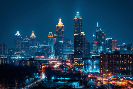 Panorama of Atlanta city night skyline, Georgia, USA