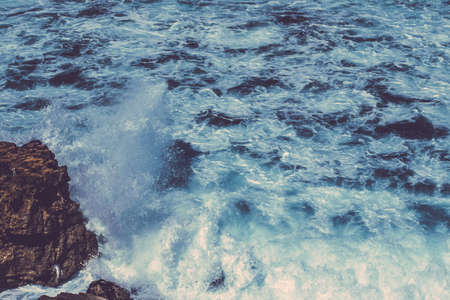 Aerial view to ocean waves. Blue water background. Dramatic colors photo.