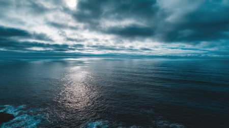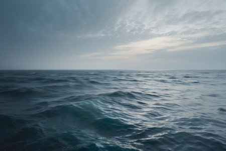This stunning ocean view captures the tranquility of water under a cloudy sky, with soft sunlight reflecting on its surface. Ideal for nature and travel themes.