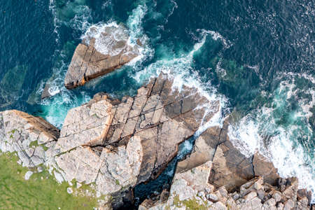 Aerial view of the rocky coastline by Marmeelan and Falcorrib south of Dungloe, County Donegal - Ireland