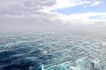Texture Light blue surface of raging sea water with white foam and wave pattern