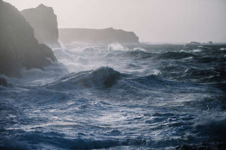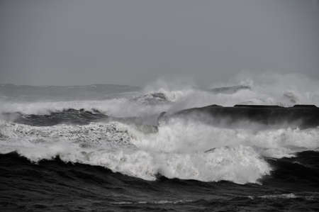 Stormy waves at Barents Sea, Arctic Ocean. Kola Peninsula, Murmansk region in Russia