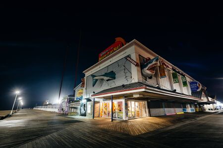Atlantic City, New Jersey,USA - JULY 5,2018: View of first board walk in america and ocean front casinos, in Atlantic City, New Jersey.