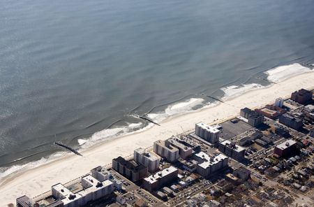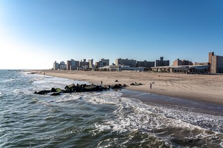 NEW YORK, USA - OCTOBER 14: Ocean view of the Coney Island beach and waterfront area on October 14, 2019 in New York