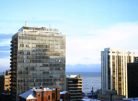 Baltimore downtown with city center business buildings during sunny day in Baltimore, Maryland