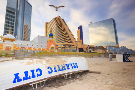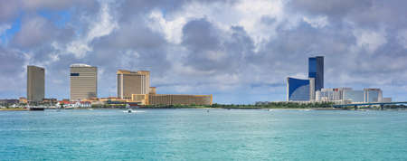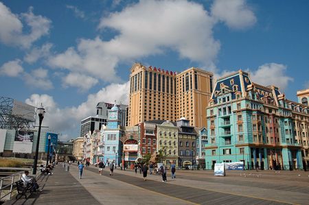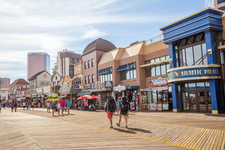 ATLANTIC CITY, NEW JERSEY - August 3: The boardwalk and Casinos on August 3, 2015 in Atlantic City, New Jersey. Gambling was legalized in the city in 1976 and led to a resurgence.