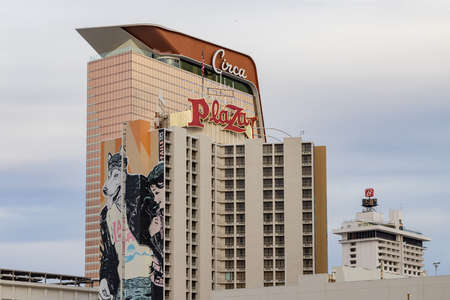 Las Vegas, JAN 12, 2021 - Afternoon cloudy view of the Circa Resort and Casino, Plaza Hotel and Casino