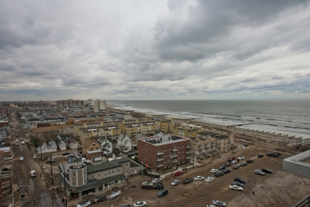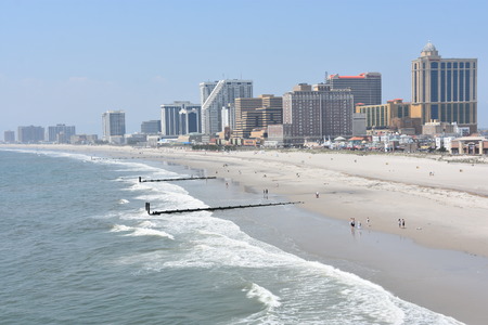 View of the beach and Atlantic Ocean in Atlantic City, New Jersey.