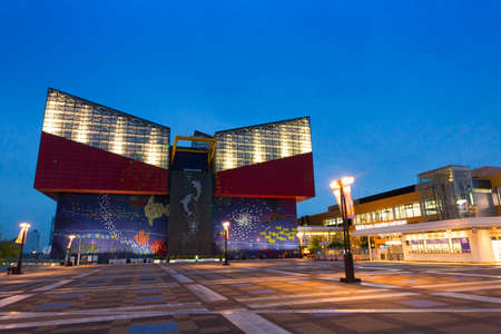 The Domino Sugars Factory at night and Harborview, Baltimore, Maryland