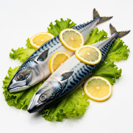 A beautifully arranged plate featuring freshly caught mackerel, showcasing vibrant colors and intricate details, perfect for culinary inspiration.