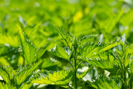 Fresh nettle leaves. Thickets of nettles. Medicinal plant. Green leaves background.