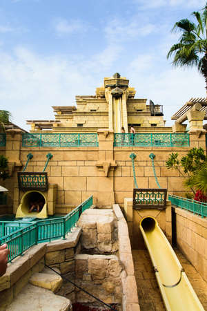 DUBAI, UAE - NOVEMBER 3: The Aquaventure waterpark of Atlantis the Palm hotel, located on man-made island Palm Jumeirah on November 3, 2013 in Dubai, UAE