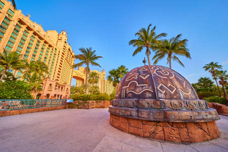 NASSAU, BAHAMAS - FEBRUARY 2012: Fountain of the Atlantis Paradise Island resort. The cost of the resort is $800 million to bring to life the myth and legend of the lost city of Atlantis .