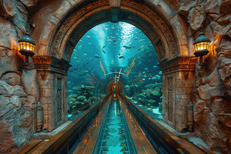 Bioluminescent Ocean Tunnel Aquarium with Colorful Fish and Coral