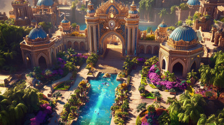 A stunning oasis featuring luxurious architecture surrounded by vibrant gardens and tranquil waters, ideal for vacation and travel inspiration.