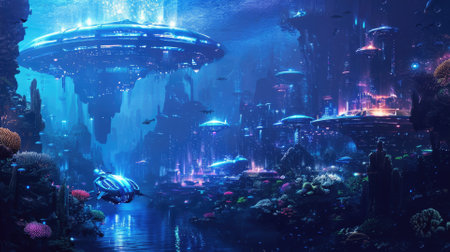Mesmerizing Underwater Ruins of a Mystical Ancient Sunken City,Glowing with Bioluminescent Coral and Enchanting Sea Life Formations